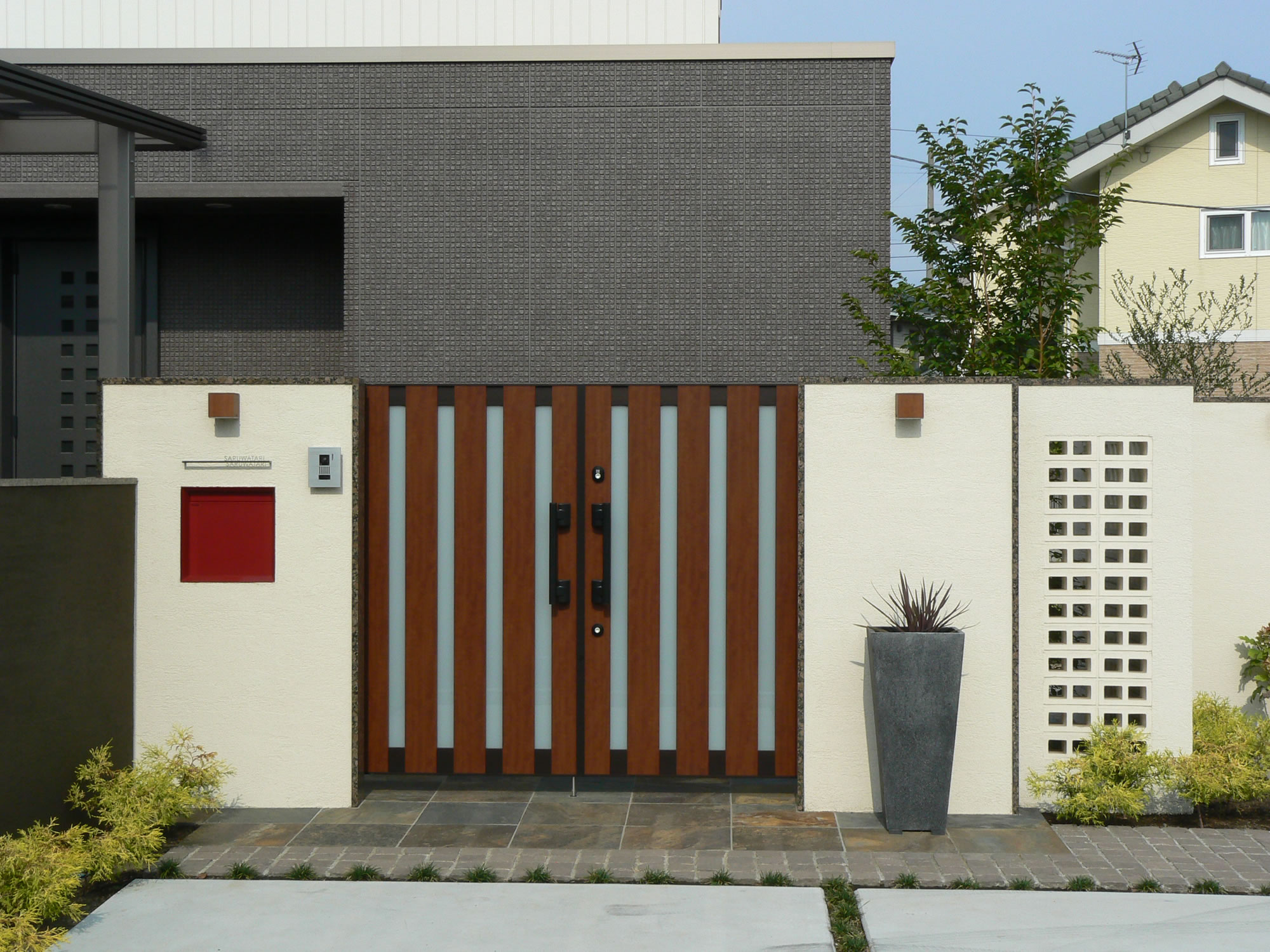 また、正面の距離のある壁は単調にならないよう段差を付け、その中心に大型プランターを置きフォーカルポイントとしました。塀全体はナチュラルな塗り壁材で仕上げていますが、高級感ある本石で縁どりすることでシャープな印象になり、モダンな住宅との一体感を生み出しました。
